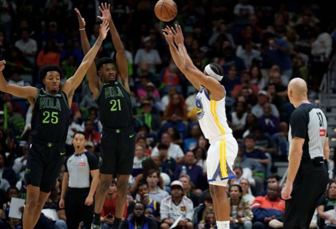 勇士124-106轻取鹈鹕,库里11中2仅9分,穆迪8记三分